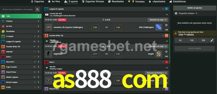 O as888 com oferece uma grande seleção de opções de apostas em e-sports com probabilidades competitivas